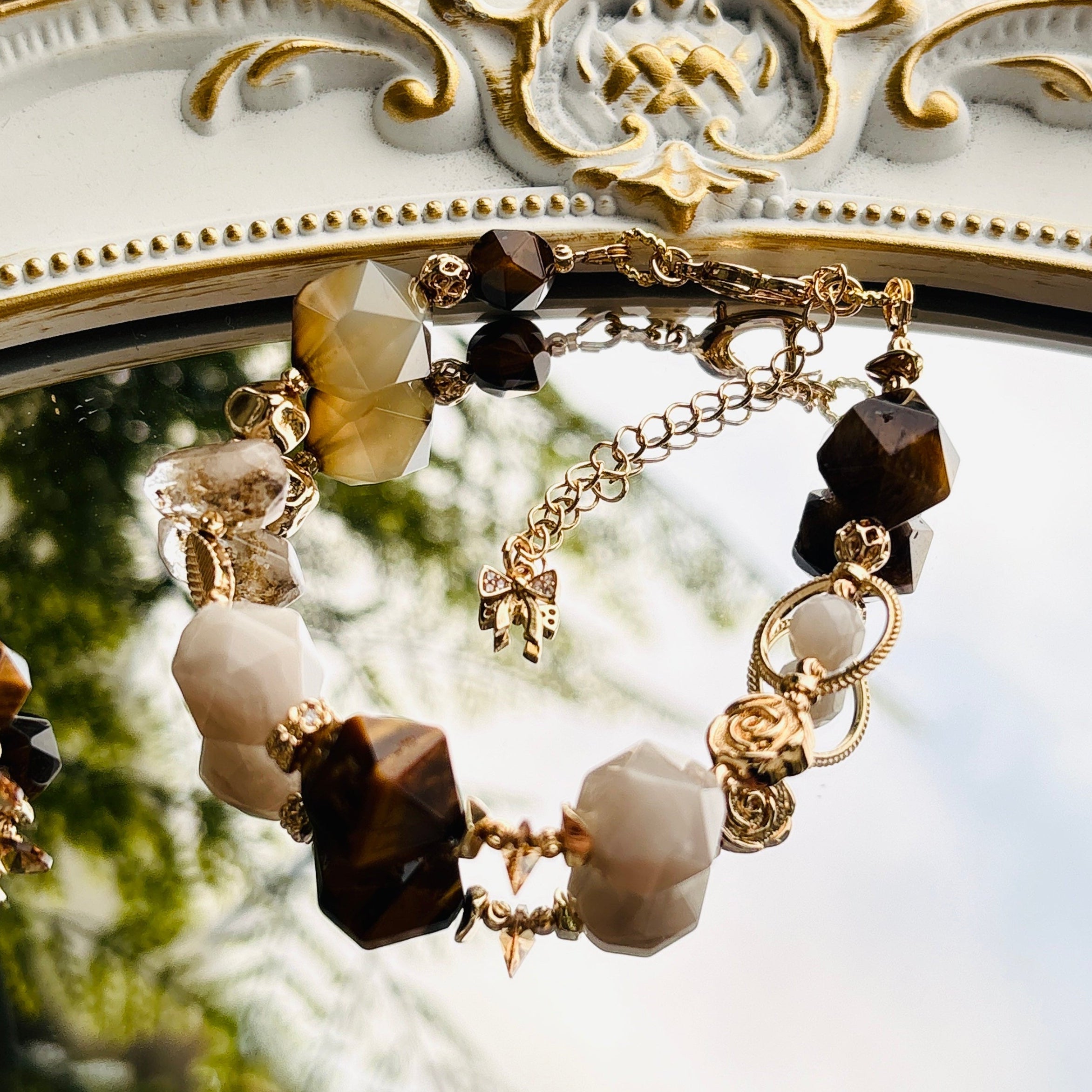 千層幽靈I沉香I奧地利水晶I印度瑪瑙I兔毛綠發石I閃靈鑽I施華洛世奇水晶(龍蝦S字母鋯石釦 可改磁吸釦)
